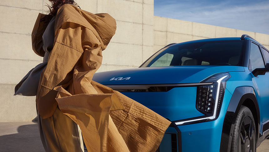 Wie der vielfach preisgekrönte EV6 (Europas Car of the Year 2022)  wurde der EV9 nach der neuen Kia-Designphilosophie „Opposites United“ (Vereinte Gegensätze) gestaltet. Inspiriert von der Natur und der Moderne, beeindruckt der EV9 durch ein unverwechselbares Profil in Verbindung mit einer futuristischen Linienführung. Aus jeder Perspektive einzigartig. Auf der Straße wie im Gelände.